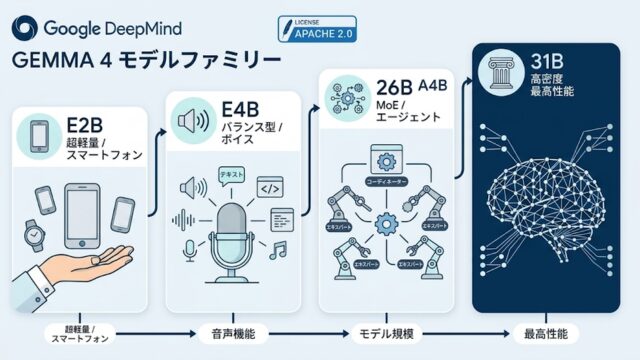 この記事では、Gemma 4に用意されている4つのモデルの詳細な解説と、メリット・デメリット、そして他のAIモデルとの比較分析を行います。