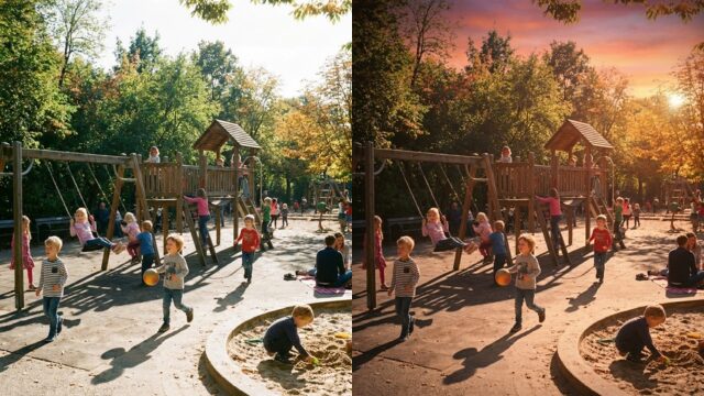 - Before: 昼間の公園で遊ぶ子供たち