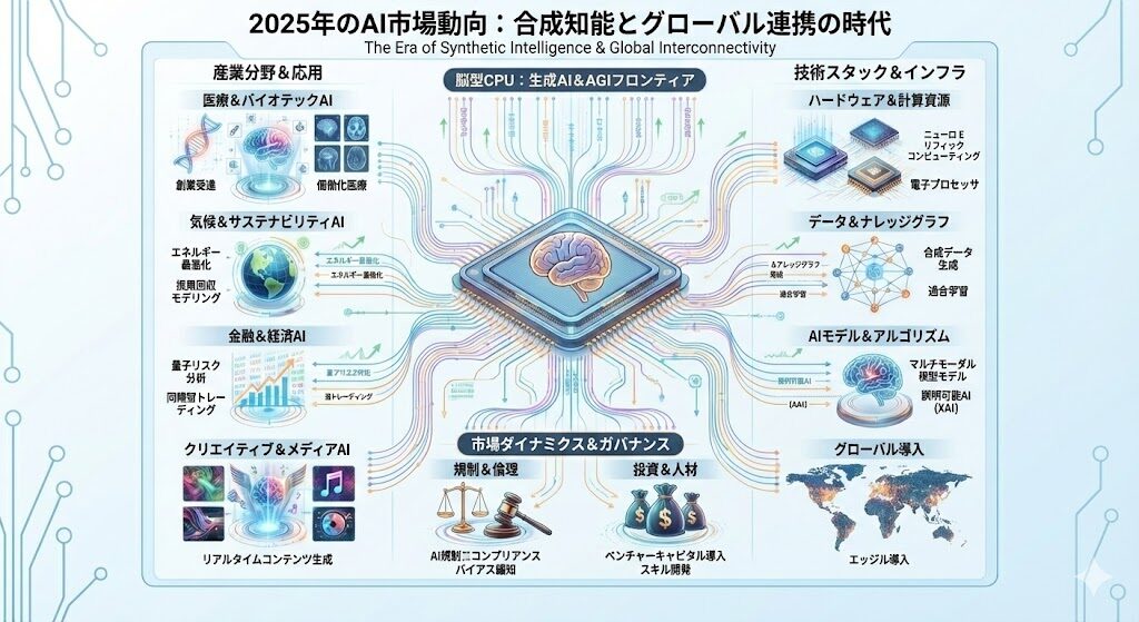 - 指示: 「2025年のAI市場動向を示す、複雑で賢そうなインフォグラフィック」